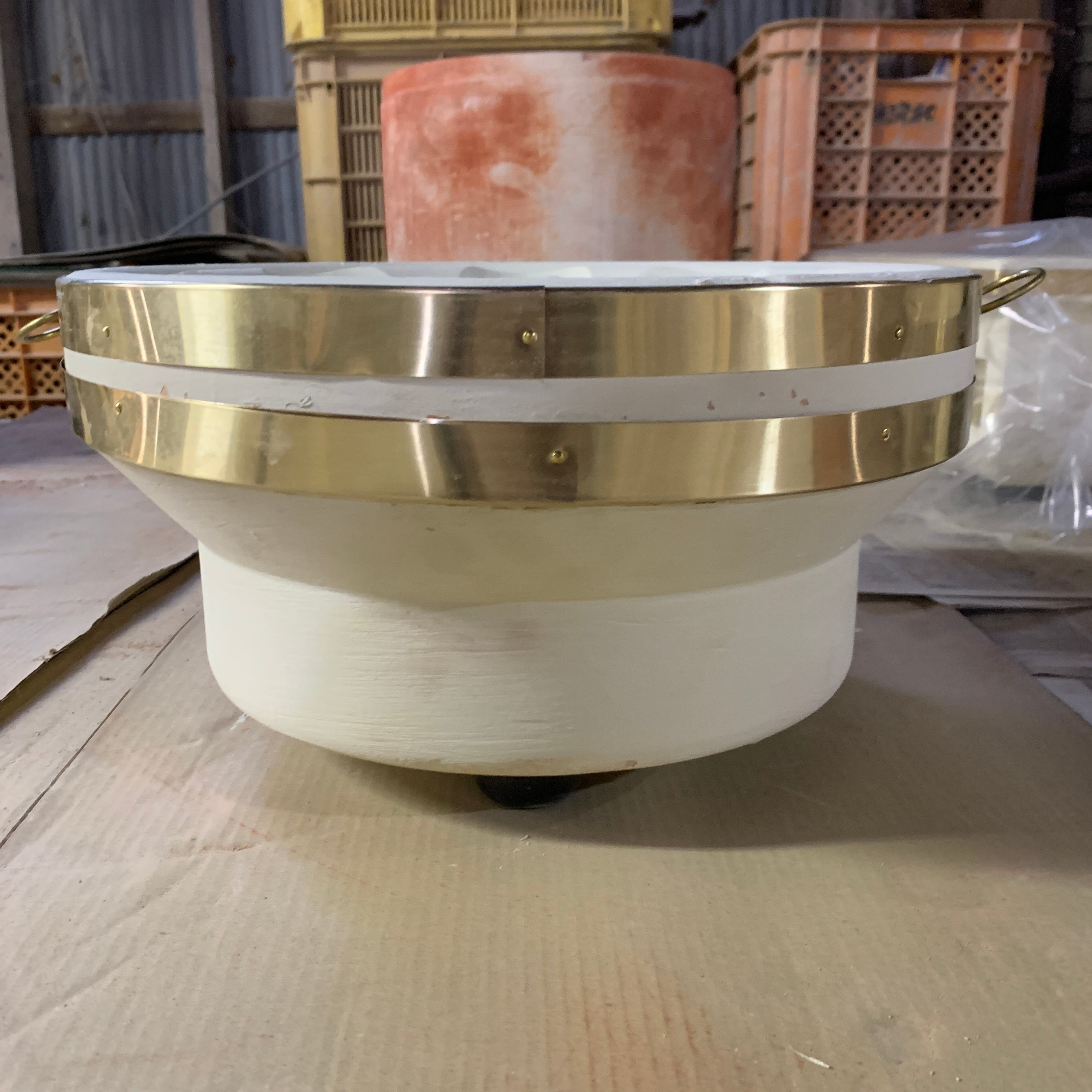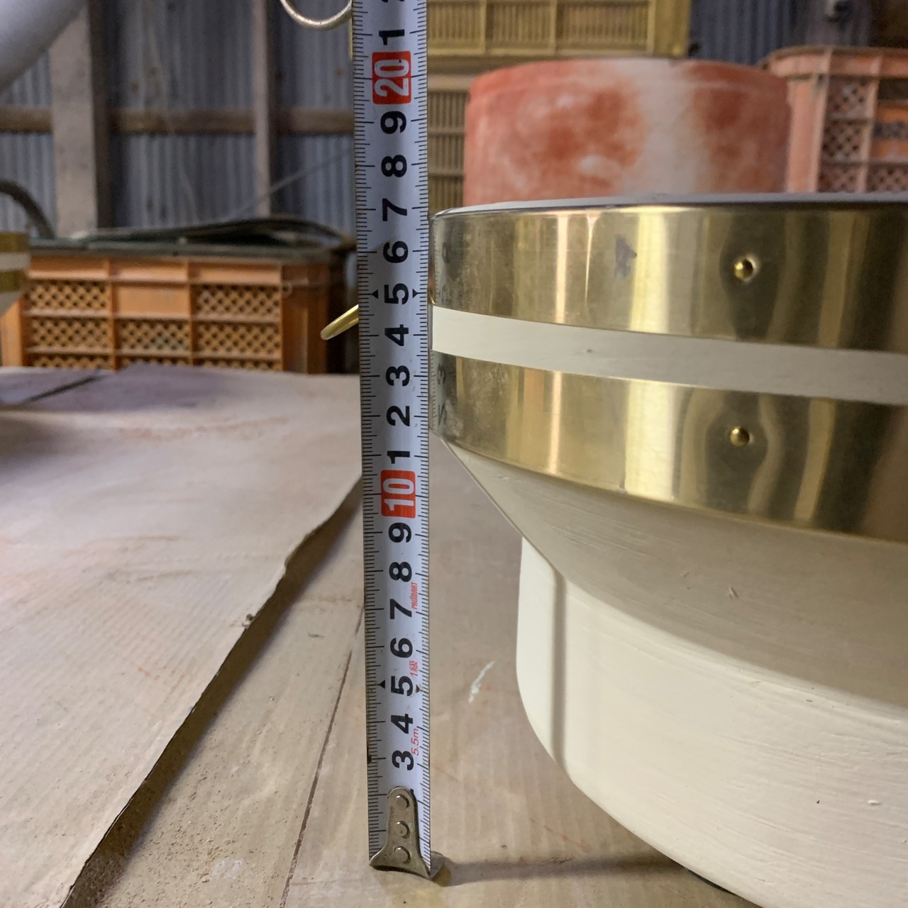七輪中央部のクビレ部分の幅が左右で違うために向かって右側の持ち手の取り付け部分が狭くなってしまっている。